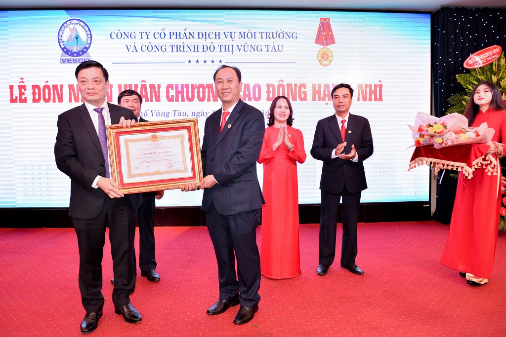 Chiều 10/5, tại khách sạn Palace, Công ty CP dịch vụ môi trường và công trình đô thị Vũng Tàu (VESCO) đã tổ chức hội nghị người lao động năm 2019 và lễ đón nhận Huân chương Lao động hạng Nhì. Tham dự buổi lễ có ông Nguyễn Thành Long, Ủy viên Ban thường vụ Tỉnh ủy, Phó Chủ tịch UBND tỉnh, ông Nguyễn Lập, Tỉnh ủy viên, Chủ tịch UBND TP Vũng Tàu cùng 500 khách mời và cán bộ công nhân viên của công ty.
