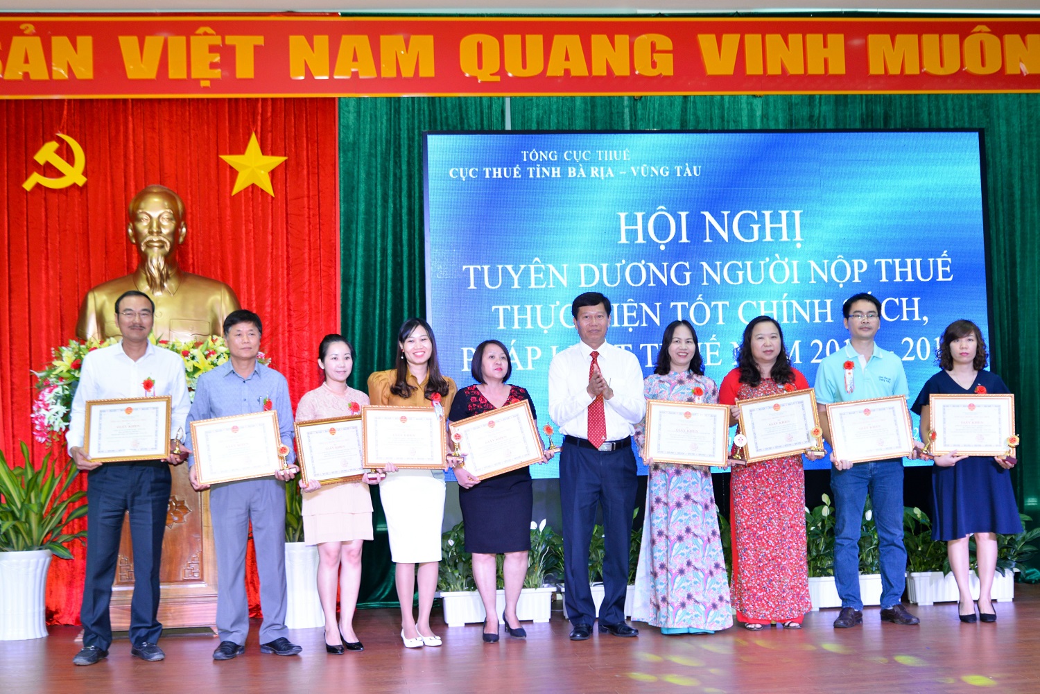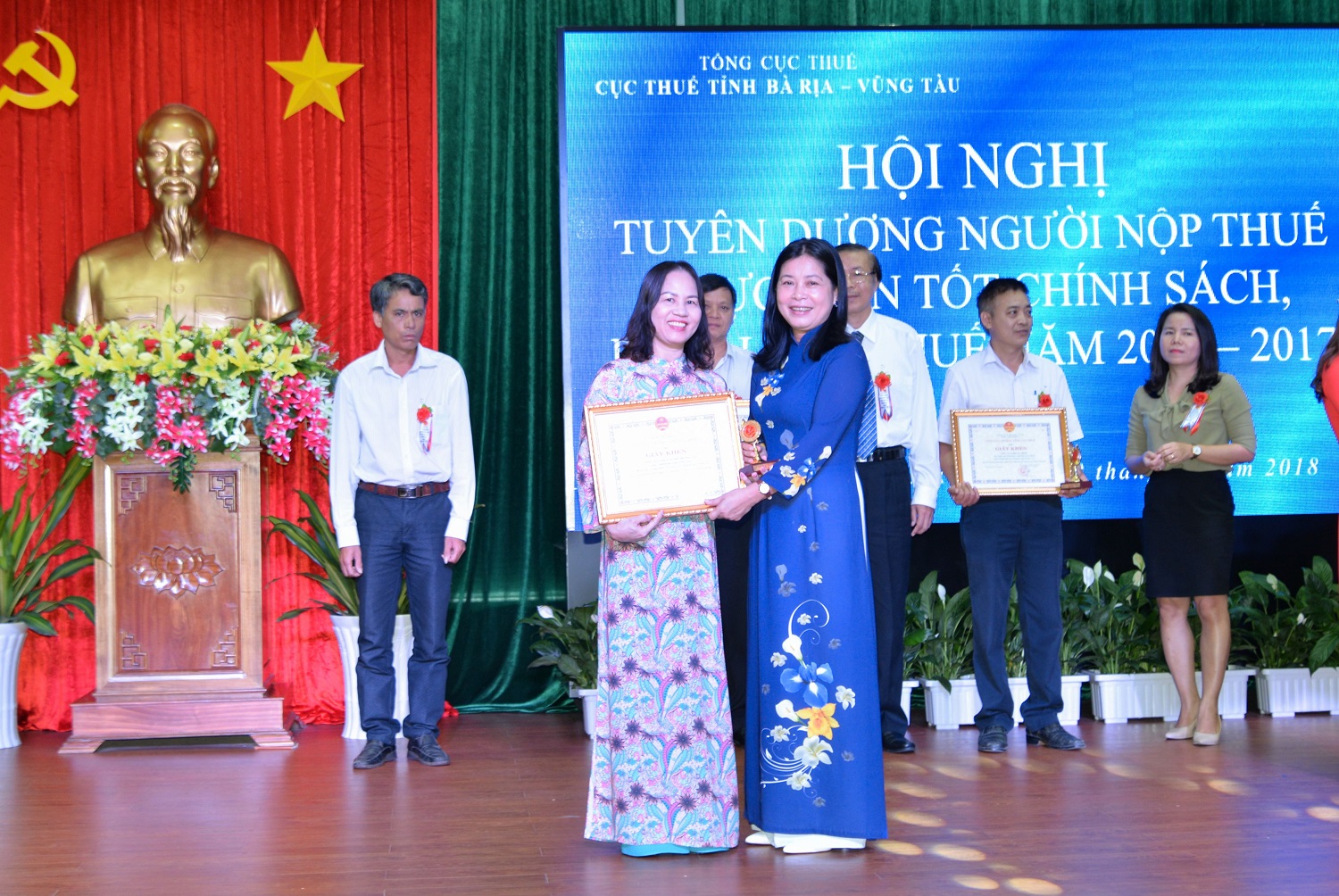 Hội nghị có 109 tổ chức, hộ kinh doanh chấp hành tốt chính sách thuế năm 2016 và 2017 đã được tôn vinh, khen thưởng. Đây là những cá nhân, đơn vị tiêu biểu, xuất sắc trong việc thực hiện tốt các chính sách thuế như: Đăng ký, kê khai, nộp thuế, chế độ sổ sách kế toán, chế độ quản lý sử dụng hóa đơn, chứng từ; nộp đầy đủ các loại thuế đúng quy định, không dây dưa, nợ thuế và không bị cơ quan thuế xử phạt do vi phạm pháp luật thuế trong năm xét khen thưởng; sản xuất kinh doanh hiệu quả, tổng số thuế phát sinh nộp ngân sách năm sau cao hơn năm trước.