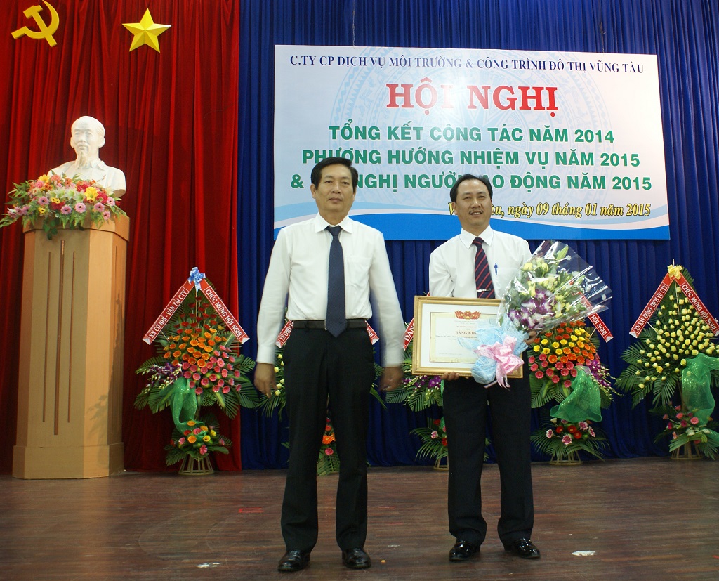 Ngày 09/01/2015, tại hội trường khách sạn Cao Su, số 108 đường Võ Thị Sáu, phường Thắng Tam, thành phố Vũng Tàu, Công ty Cổ phần Dịch vụ Môi trường & Công trình Đô thị Vũng Tàu đã tổ chức Hội nghị tổng kết hoạt động sản xuất kinh doanh năm 2014 – Phương hướng nhiệm vụ 2015 & Hội nghị người lao động năm 2015.