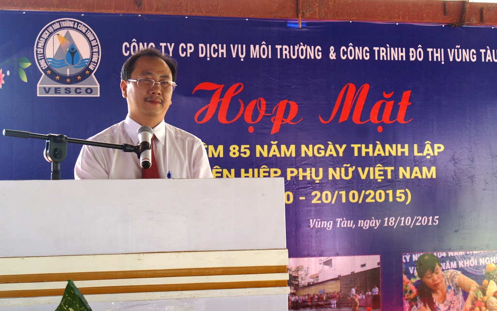 Phát biểu buổi họp mặt, ông Nguyễn Xuân Mạnh – Bí thư chi bộ, Chủ tịch HĐQT, Tổng Giám Đốc công ty đã biểu dương và đánh giá cao những thành tích đã đạt được của nữ CB-CNV công ty. Các chị đã không kể nắng mưa, đêm đông gió rét, những ngày lễ tết – ngày mọi người sum vầy bên gia đình thì các chị, những công nhân môi trường có mặt trên các ngã đường của thành phố thân yêu, những màu áo xanh, áo vàng đang âm thầm làm đẹp cho đời. Những đóng góp đó đã làm nổi bật 1 hình ảnh quen thuộc mà thân thương làm nên 1 công ty CP Dịch vụ Môi trường và Công trình Đô thị Vũng Tàu vững vàng ngày hôm nay.