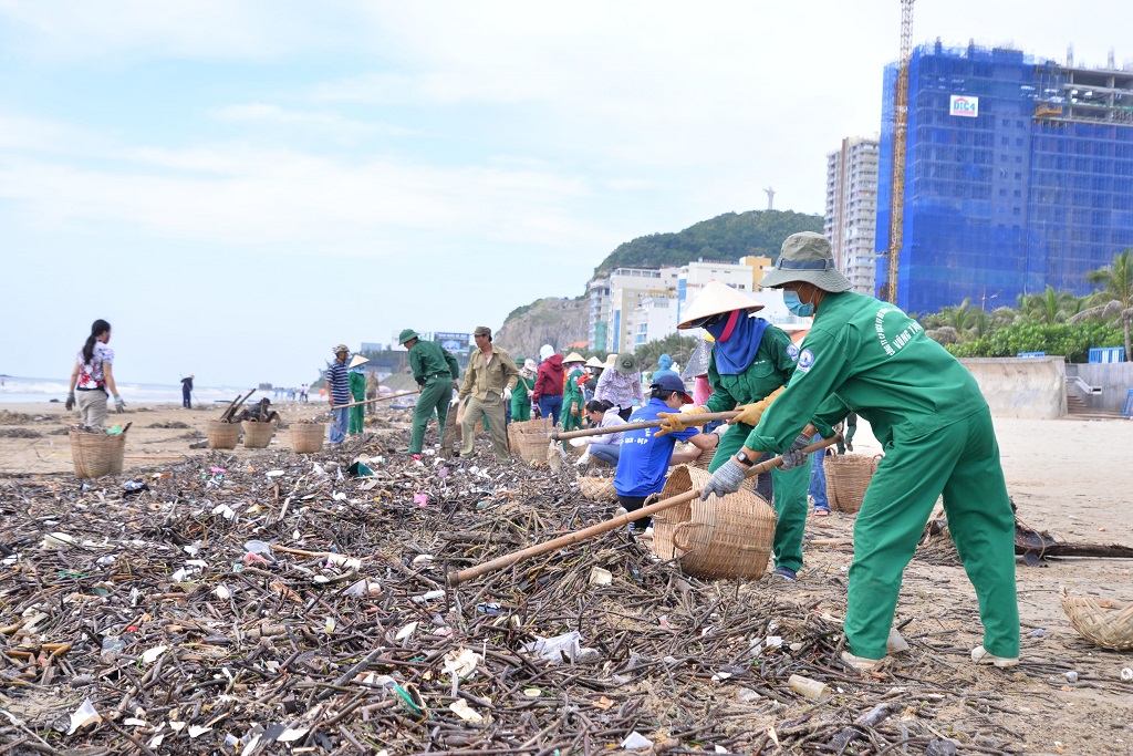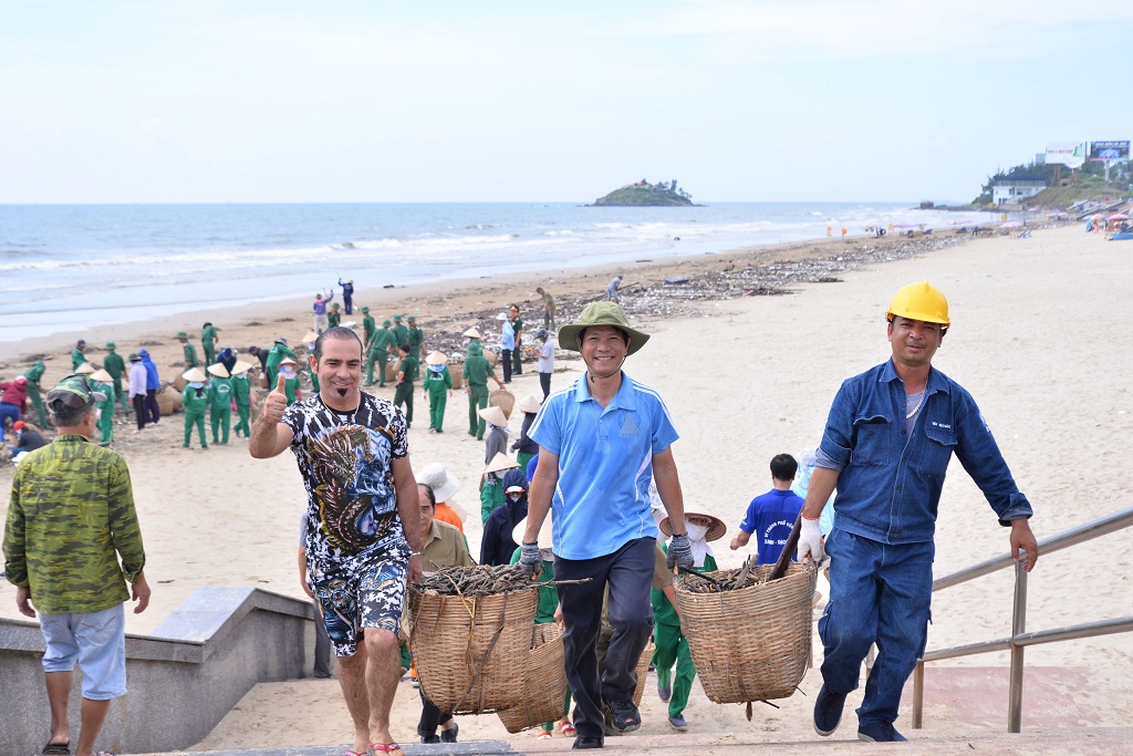 Toàn bộ cán bộ, công nhân viên lao động của Công ty CP Dịch vụ Môi trường và Công trình đô thị Vũng Tàu đã được huy động để dọn dẹp rác biển. Đã có khoảng 400 tấn rác được gom chuyển lên bờ, ép vào xe của công ty để chở về khu xử lý rác thải tập trung Tóc Tiên (thị xã Phú Mỹ) xử lý. Có mặt trực tiếp tại bãi biển, chỉ đạo thu gom rác, ông Nguyễn Xuân Mạnh, chủ tịch HĐQT, Tổng giám đốc công ty yêu cầu CBCNLĐ công ty nhanh chóng khẩn trương dọn dẹp rác, trả lại bãi biển xanh sạch đẹp. TP Vũng Tàu cũng đã huy động 3.300 người gồm công nhân các hợp tác xã, bộ đội, thanh niên, học sinh và nhiều du khách nước ngoài cùng chung tay dọn rác. Đến sáng ngày 10/10, về cơ bản bãi biển Vũng Tàu đã sạch sẽ ngăn nắp trở lại. Cuối tuần này, du khách lại được thỏa thích tắm biển mà không lo ngại rác bẩn.