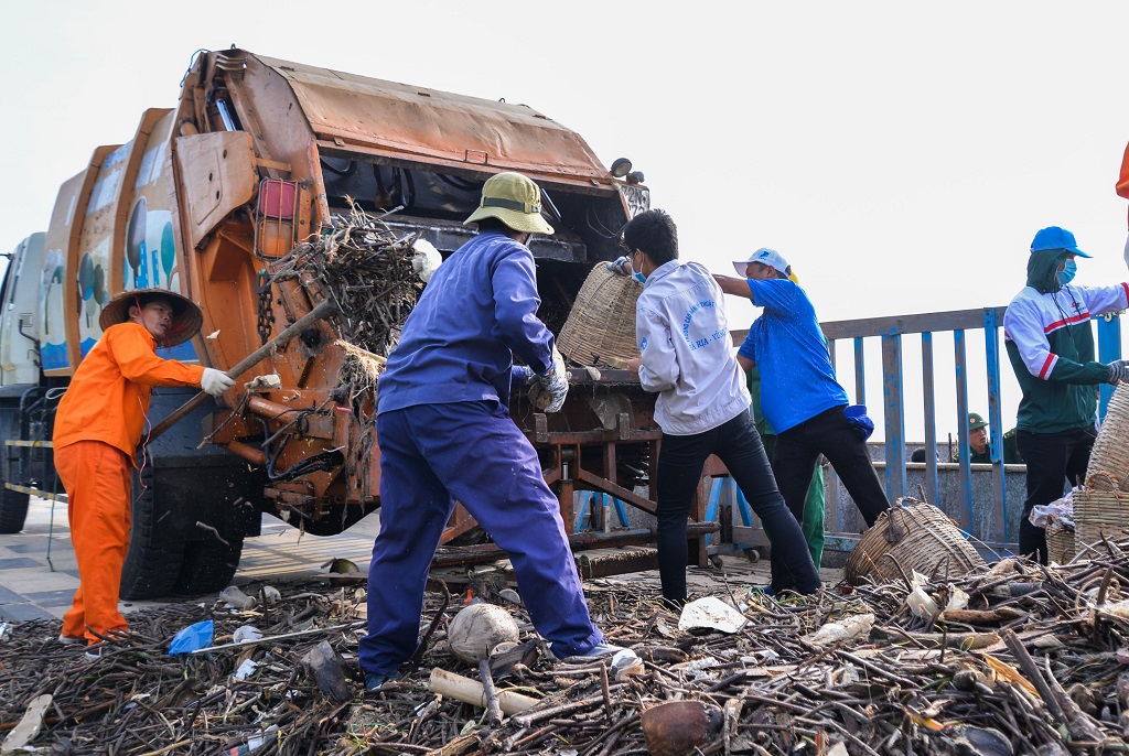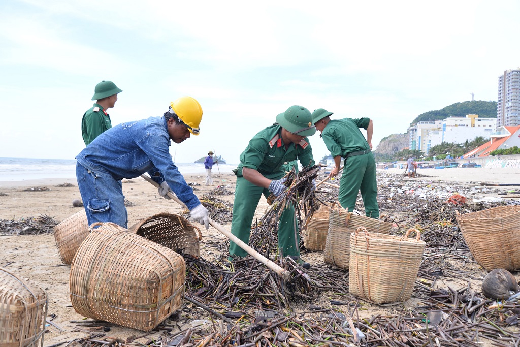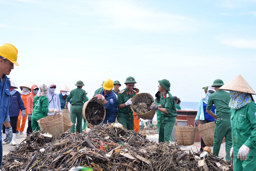 Huy động toàn bộ lực lượng, tích cực dọn dẹp hàng trăm tấn rác biển.