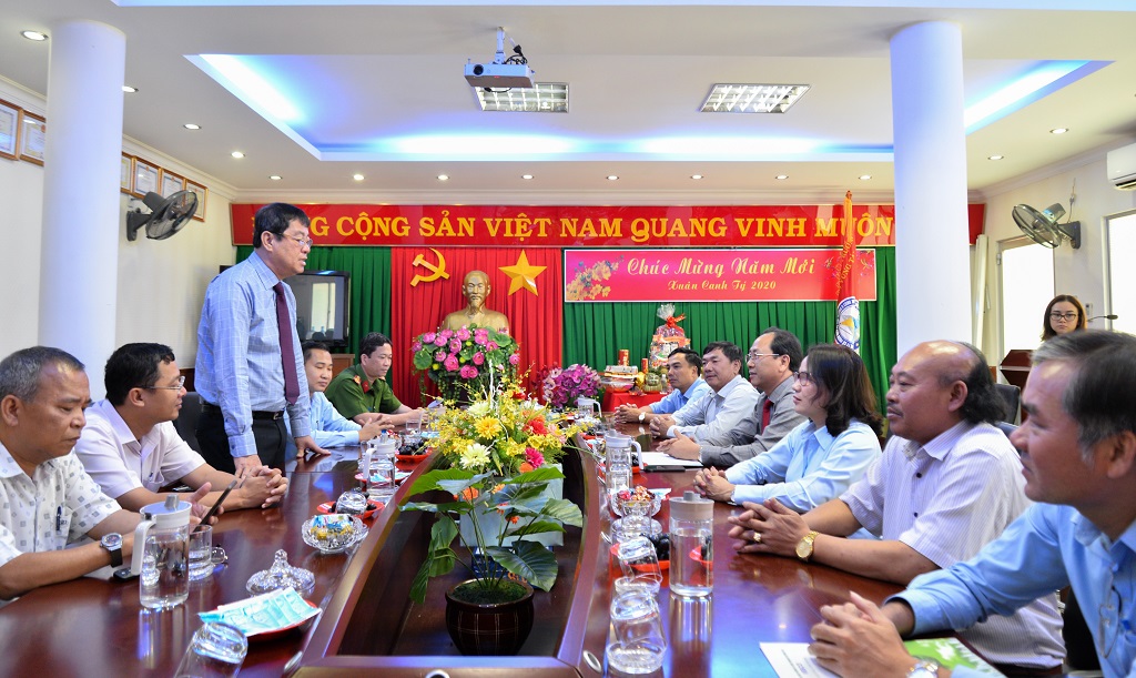 Ông Trần Đình Khoa, Bí thư Thành ủy Vũng Tàu phát biểu tại buổi thăm và chúc tết công ty ngày 30 Tết.