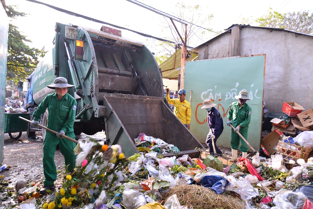 Thu gom và vận chuyển rác thải ngày 30 Tết.