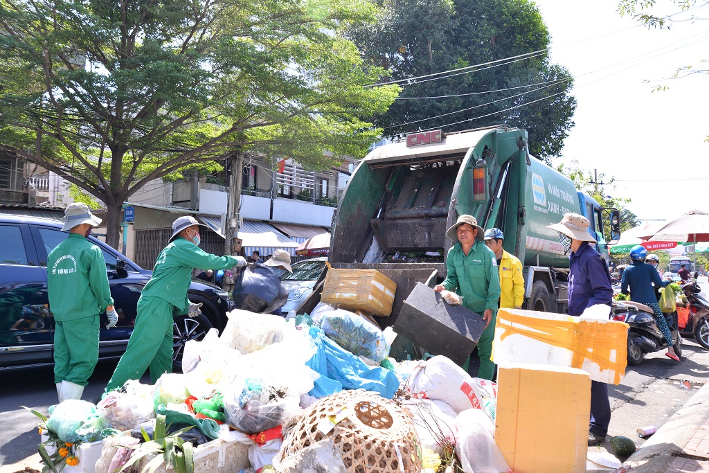 Tích cực, khẩn trương thu gom, vận chuyển rác ngày 30 Tết, giữ gìn thành phố xanh, sạch, đẹp.
