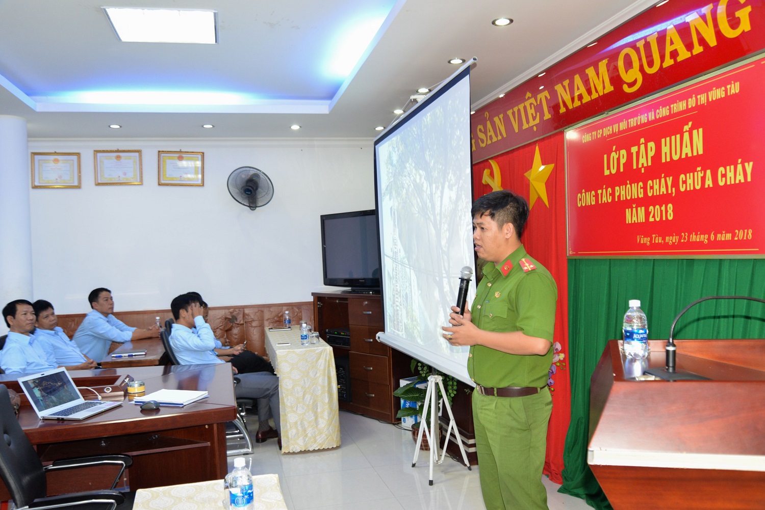 Trong 2 ngày 23 và 24-6, Công ty CP Dịch vụ môi trường và Công trình đô thị Vũng Tàu phối hợp với Phòng Cảnh sát PCCC số 2 (Cảnh sát PCCC tỉnh) tổ chức huấn luyện nghiệp vụ về PCCC năm 2018 cho cán bộ, công nhân viên của công ty.