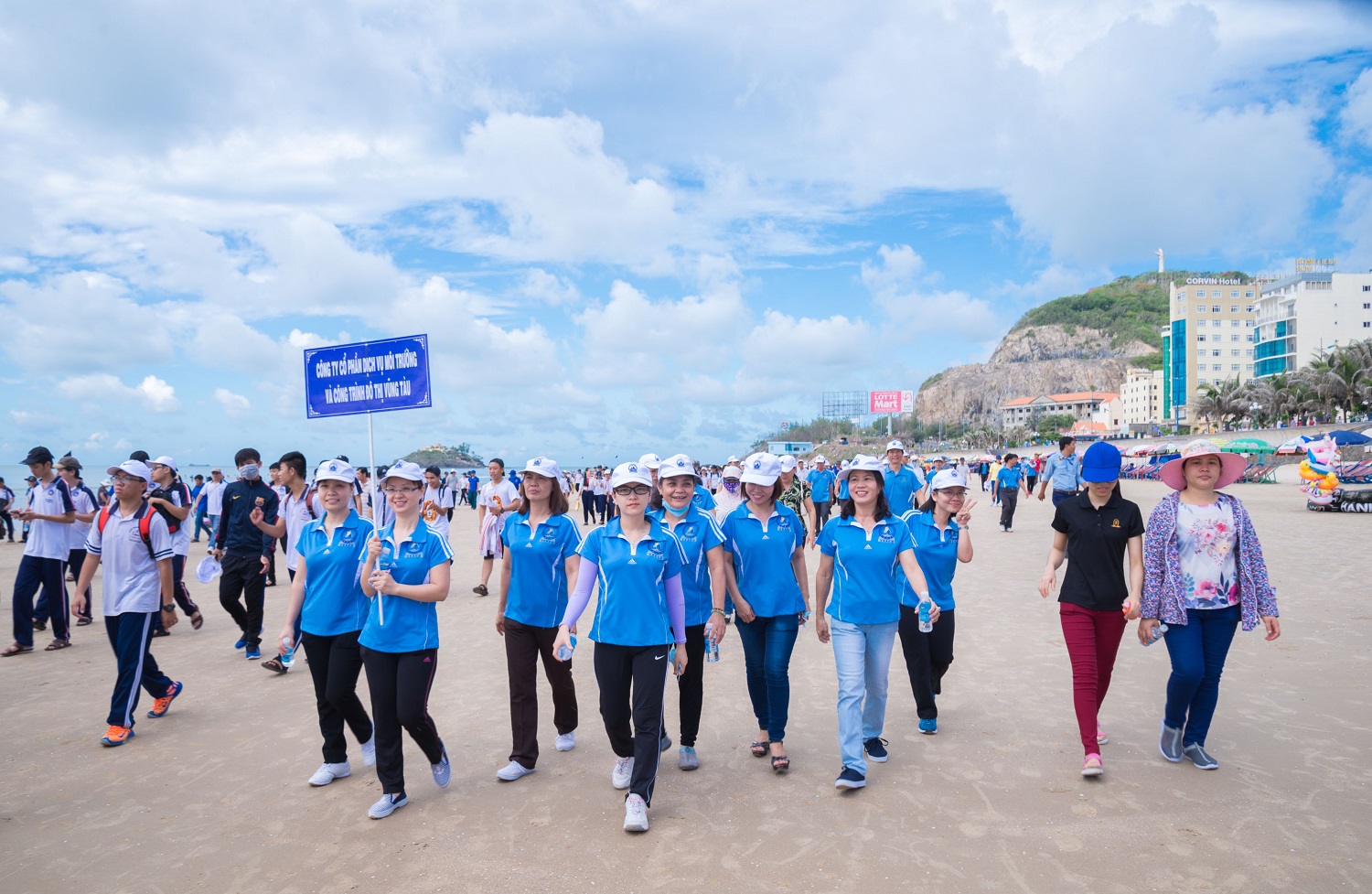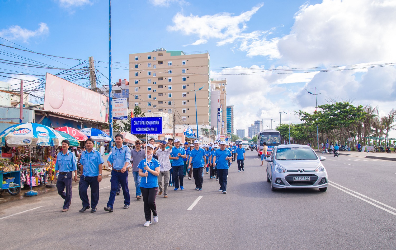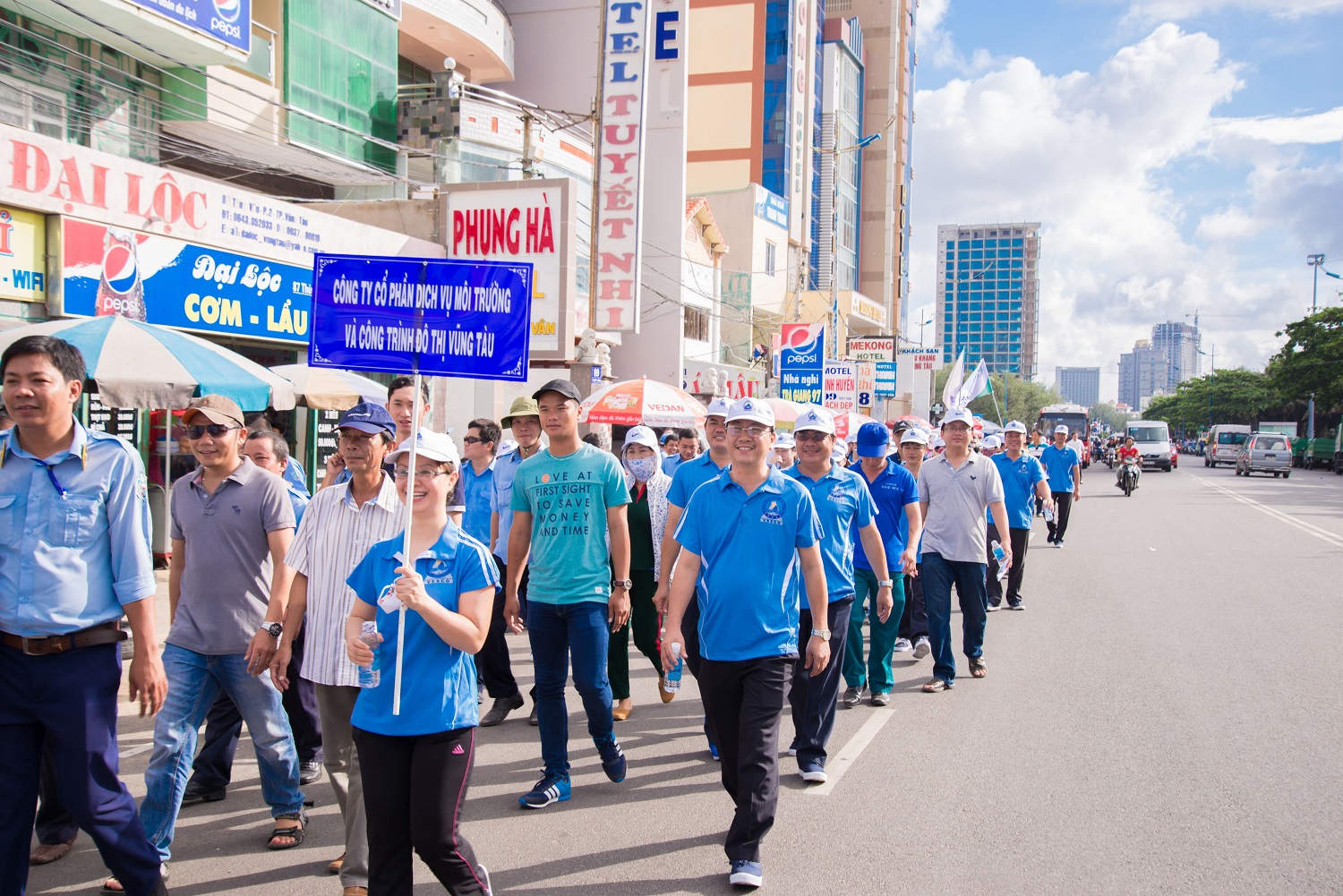 Ảnh : Công ty CP Dịch vụ Môi trường & Công trình Đô thị Vũng Tàu diễu hành, vận động nhân dân và du khách nâng cao ý thức bảo vệ môi trường biển
