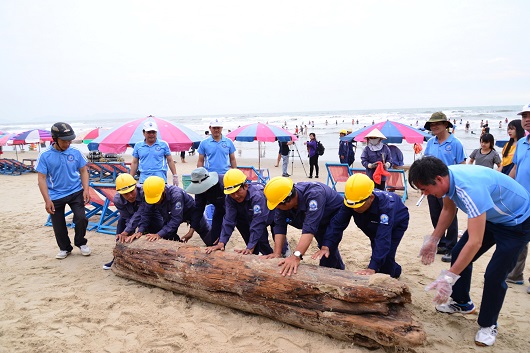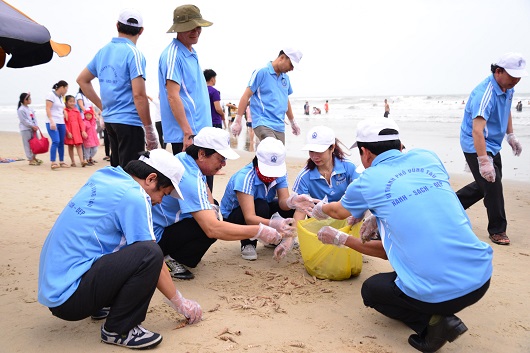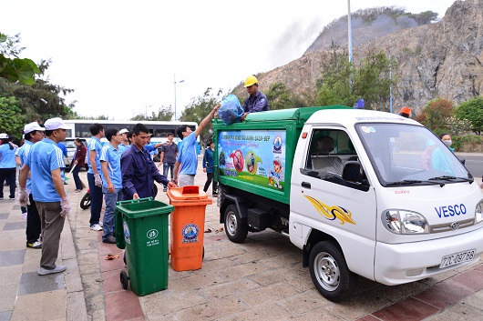 Cán bộ, công nhân viên Công ty CP Dịch vụ môi trường & Công trình Đô thị Vũng Tàu (VESCO) tham gia thu gom rác tại bãi biển