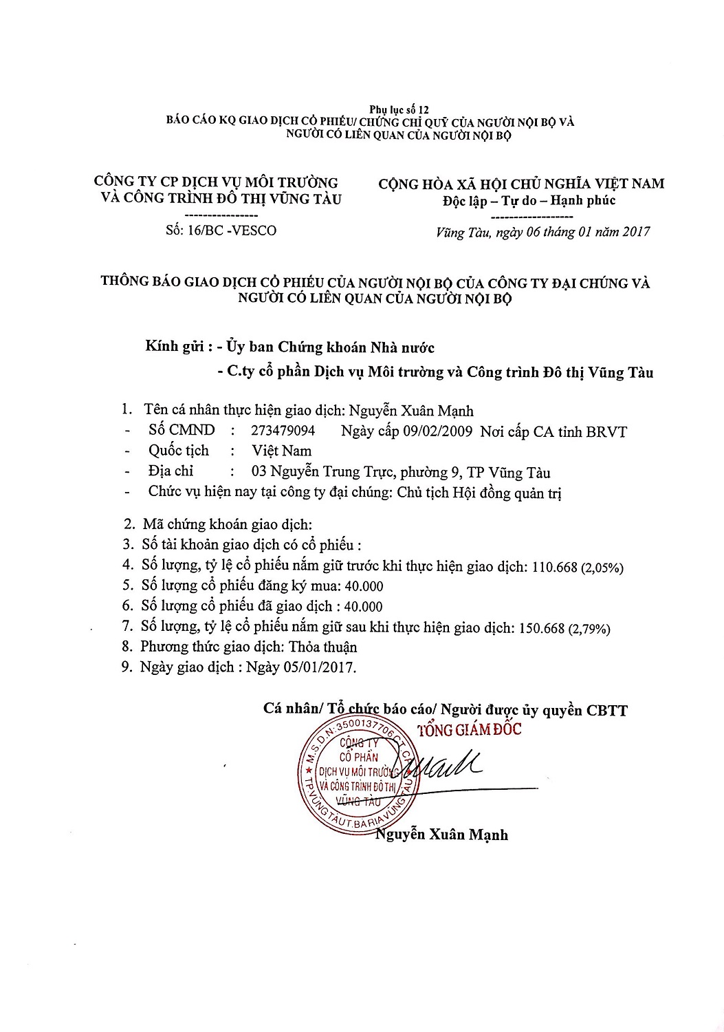Thông báo giao dịch cổ phiếu của người nội bộ của công ty đại chúng và người có liên quan của người nội bộ